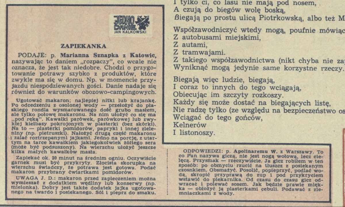 Archiwum / Jedno danie nr 1799 (39/1979) 2/9 Podziel się Tytuł Zapiekanka Autor Jan Kalkowski Rubryka Jedno danie Artykuł z numeru 1799 (39/1979) Data wydania 30 września 1979