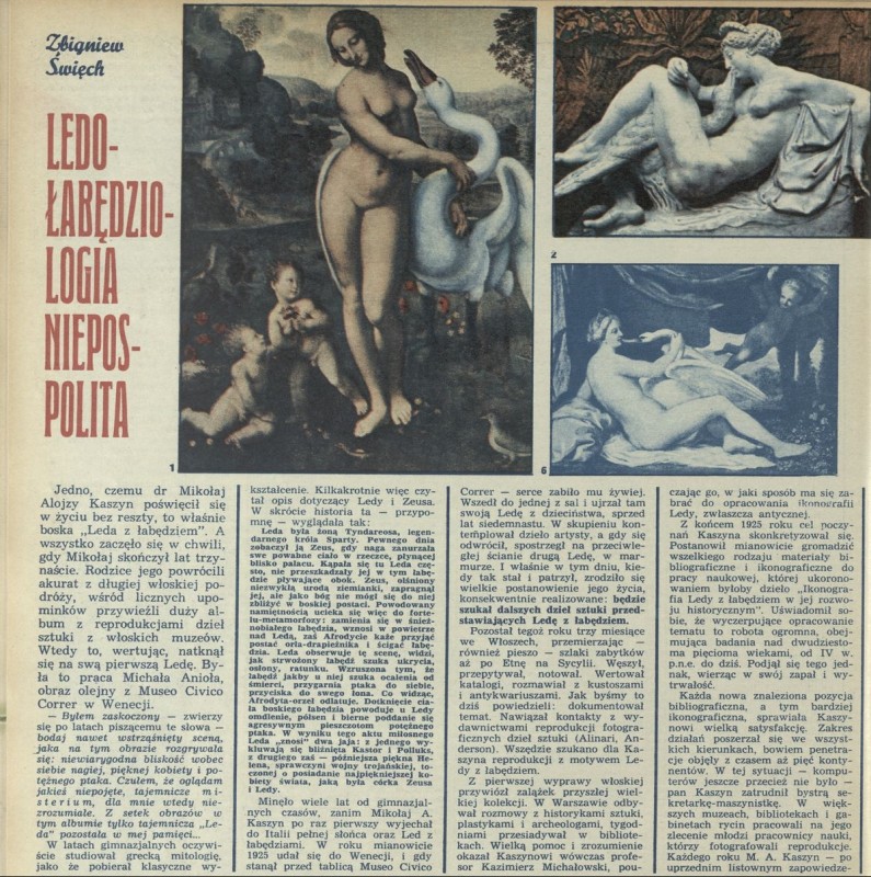 Archiwum / Artykuł nr 1546 (47/1974) 22/45 Podziel się Tytuł Ledo-łabędzio-logia niepospolita Autor Zbigniew Święch Kategoria Artykuł Artykuł z numeru 1546 (47/1974) Data wydania 24 listopada 1974 Tagi sztuka historia