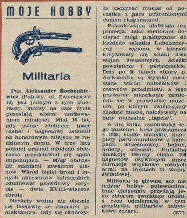 Archiwum / Różności nr 1555 (04/1975) 65439/123969 Podziel się Tytuł Moje hobby: Militaria Autor Zbigniew Turek Kategoria Różności Artykuł z numeru 1555 (4/1975) Data wydania 26 stycznia 1975