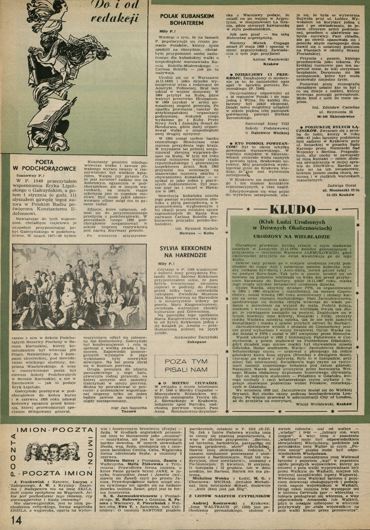 Archiwum / Listy do i od redakcji nr 1556 (05/1975) 65511/123969 Podziel się Tytuł Poza tym napisali nam Rubryka Listy do i od redakcji Artykuł z numeru 1556 (5/1975) Data wydania 2 lutego 1975