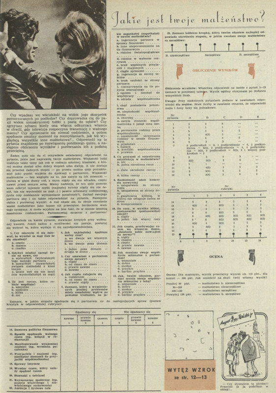 Archiwum / Różności nr 1598 (47/1975) 67085/123969 Podziel się Tytuł Jakie jest twoje małżeństwo? Kategoria Różności Artykuł z numeru 1598 (47/1975) Data wydania 23 listopada 1975 Tagi quiz test miłość