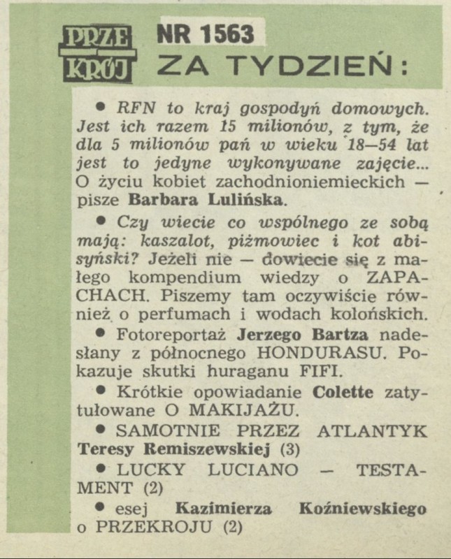 Archiwum / Różności nr 1562 (11/1975) 88/148 Podziel się Tytuł Za tydzień (nr 1563) Kategoria Różności Artykuł z numeru 1562 (11/1975) Data wydania 16 marca 1975