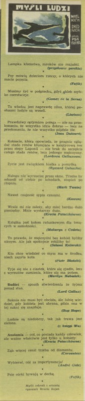 Archiwum / Myśli nr 714-16 (50-52/1958) 27/474 Podziel się Tytuł Myśli ludzi wielkich, średnich i psa Fafika Rubryka Myśli Artykuł z numeru 714-16 (50/1958) Data wydania 1 grudnia 1958