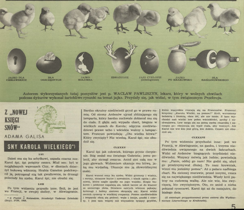 Archiwum / Opowiadanie nr 1564 (13/1975) 51/102 Podziel się Tytuł Z „Nowej Księgi Snów” Adama Galisa: Sny Karola Wielkiego Autor Adam Galis Kategoria Opowiadanie Artykuł z numeru 1564 (13/1975) Data wydania 30 marca 1975 Tagi sen Lucjan Kaszyński