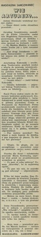 Archiwum / Felieton nr 714-16 (50-52/1958) 50/90 Podziel się Tytuł Wie Arturek?... Autor Magdalena Samozwaniec Kategoria Felieton Artykuł z numeru 714-16 (50/1958) Data wydania 1 grudnia 1958
