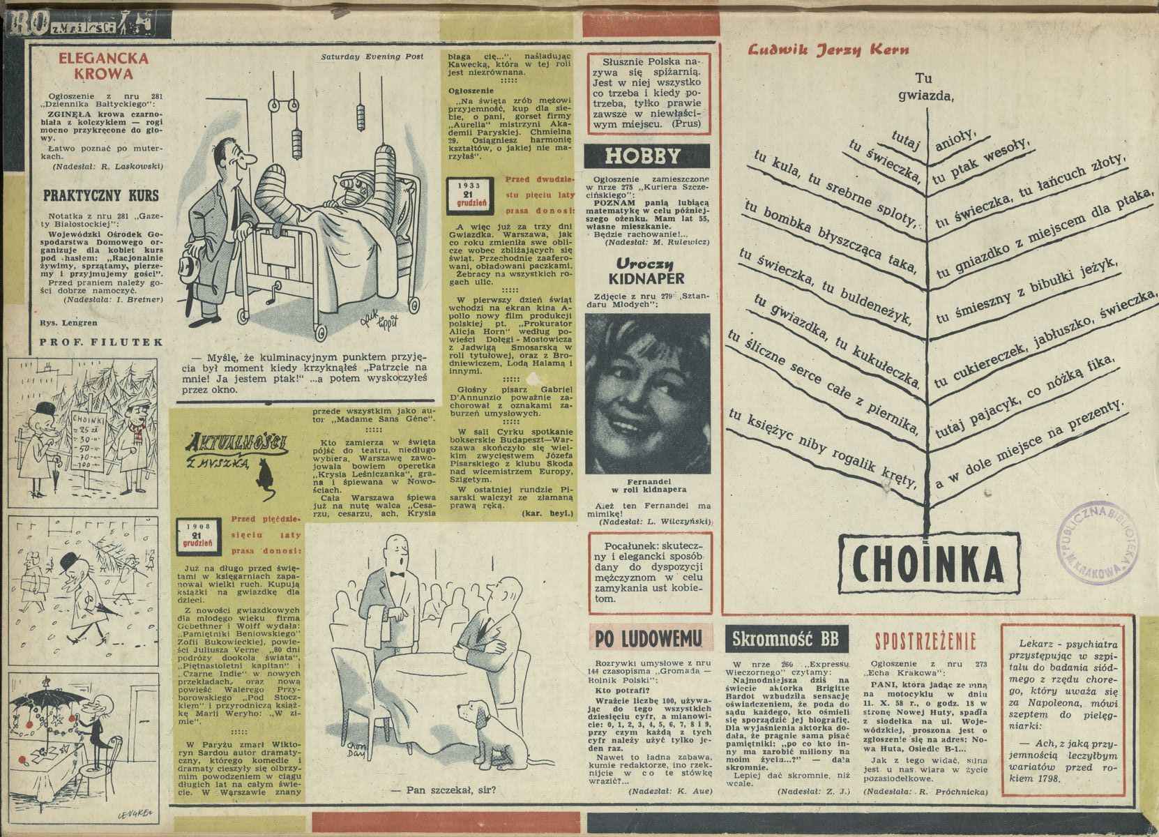 Archiwum / Rozmaitości [old] nr 714-16 (50-52/1958) 100/101 Podziel się Tytuł Choinka Autor Ludwik Jerzy Kern Rubryka Rozmaitości [old] Artykuł z numeru 714-16 (50/1958) Data wydania 1 grudnia 1958