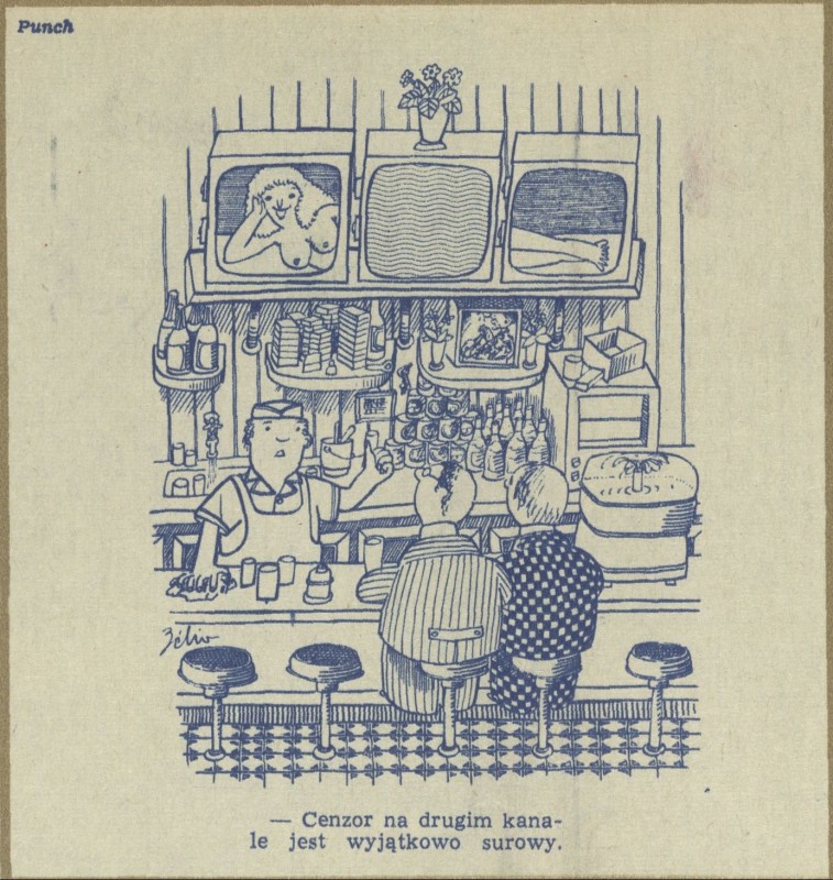 Archiwum / Rysunki z magazynu Punch nr 1567 (16/1975) 55/434 Podziel się Tytuł - Cenzor na drugim kanale Autor Punch Magazine Rubryka Rysunki z magazynu Punch Artykuł z numeru 1567 (16/1975) Data wydania 20 kwietnia 1975