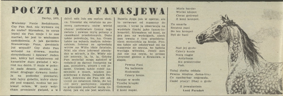 Archiwum / Pocztą od Afanasjewa nr 1582 (31/1975) 66798/123969 Podziel się Tytuł Pocztą do Afanasjewa Rubryka Pocztą od Afanasjewa Artykuł z numeru 1582 (31/1975) Data wydania 3 sierpnia 1975