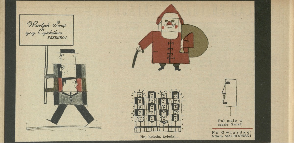 Archiwum / Rysunek nr 1132-33 (51-52/1966) 1/5 Podziel się Tytuł Wesołych Świąt życzy Czytelnikom Przekrój Autor Adam Macedoński Kategoria Rysunek Artykuł z numeru 1132-33 (51/1966) Data wydania 18 grudnia 1966 Tagi Święta Boże Narodzenie