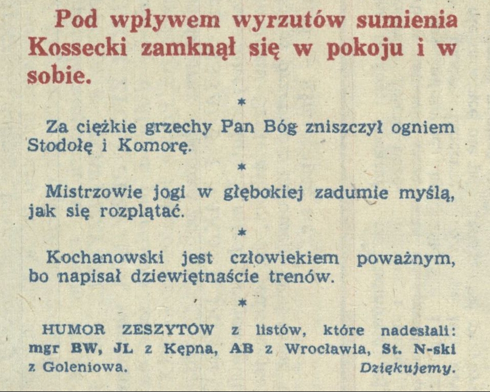 Archiwum / Humor zeszytów szkolnych nr 2018 (07/1984) 82977/123969 Podziel się Tytuł Humor zeszytów Rubryka Humor zeszytów szkolnych Artykuł z numeru 2018 (7/1984) Data wydania 12 lutego 1984 Tagi humor zeszyt