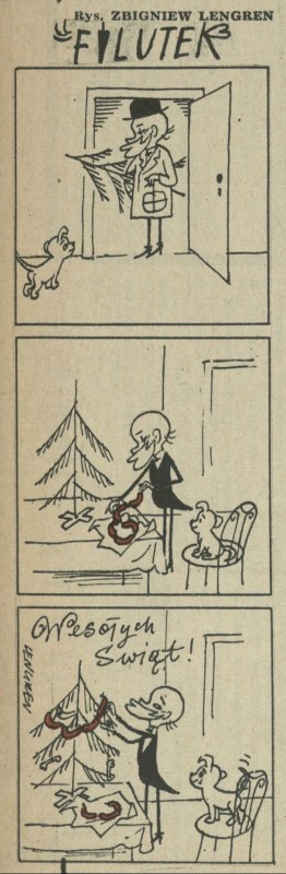 Archiwum / Profesor Filutek nr 1132-33 (51-52/1966) 47412/123969 Podziel się Tytuł Prof. Filutek Autor Zbigniew Lengren Rubryka Profesor Filutek Artykuł z numeru 1132-33 (51/1966) Data wydania 18 grudnia 1966 Tagi żart rysunkowy pies Filuś Święta Bożego Narodzenia choinka
