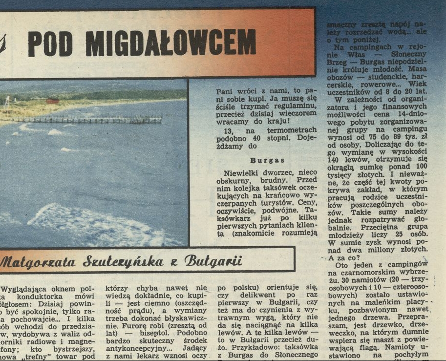 Archiwum / korespondencja własna "Przekroju" nr 2256 (36/1988) 363/2302 Podziel się Tytuł Sznaps pod Migdałowcem Autor Małgorzata Szułczyńska Rubryka korespondencja własna "Przekroju" Artykuł z numeru 2256 (36/1988) Data wydania 4 września 1988 Tagi Bułgaria Burgas migdałowiec Słoneczny Brzeg