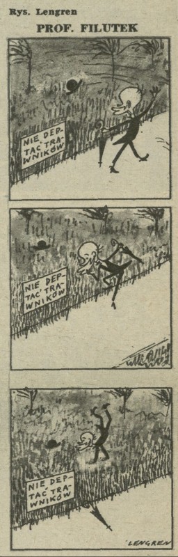 Archiwum / Profesor Filutek nr 317 (19/1951) 98/477 Podziel się Tytuł Prof. Filutek Autor Zbigniew Lengren Rubryka Profesor Filutek Artykuł z numeru 317 (19/1951) Data wydania 6 maja 1951 Tagi żart rysunkowy trawnik