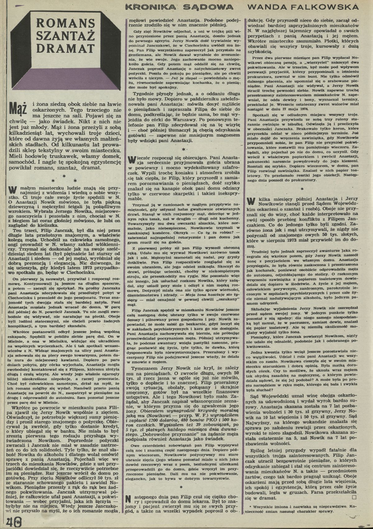Archiwum / Kronika sądowa nr specjalny 51/1975 01/37 Podziel się Tytuł Romans, szantaż, dramat Autor Wanda Falkowska Rubryka Kronika sądowa Artykuł z numeru nr specjalny 51/1975 Data wydania 21 grudnia 1975