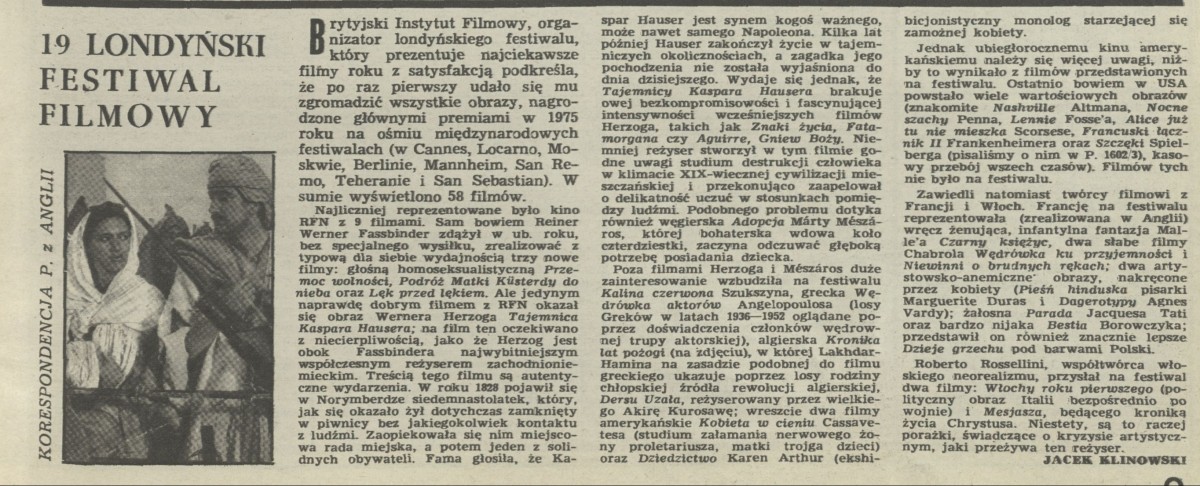 Archiwum / Film nr 1605 (02/1976) 295/519 Podziel się Tytuł 10 londyński festiwal filmowy Autor Jacek Klinowski Rubryka Film Artykuł z numeru 1605 (2/1976) Data wydania 11 stycznia 1976 Tagi film festiwal kultura