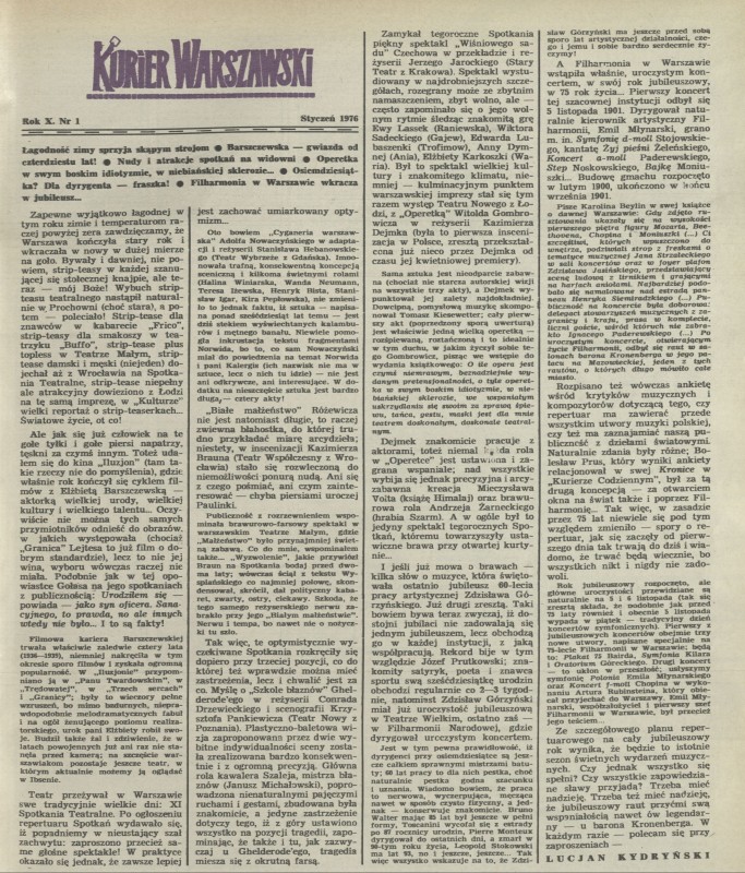 Archiwum / Kurier Warszawski nr 1605 (02/1976) 67407/123969 Podziel się Tytuł Kurier warszawski Autor Lucjan Kydryński Rubryka Kurier Warszawski Artykuł z numeru 1605 (2/1976) Data wydania 11 stycznia 1976 Tagi Warszawa miasto