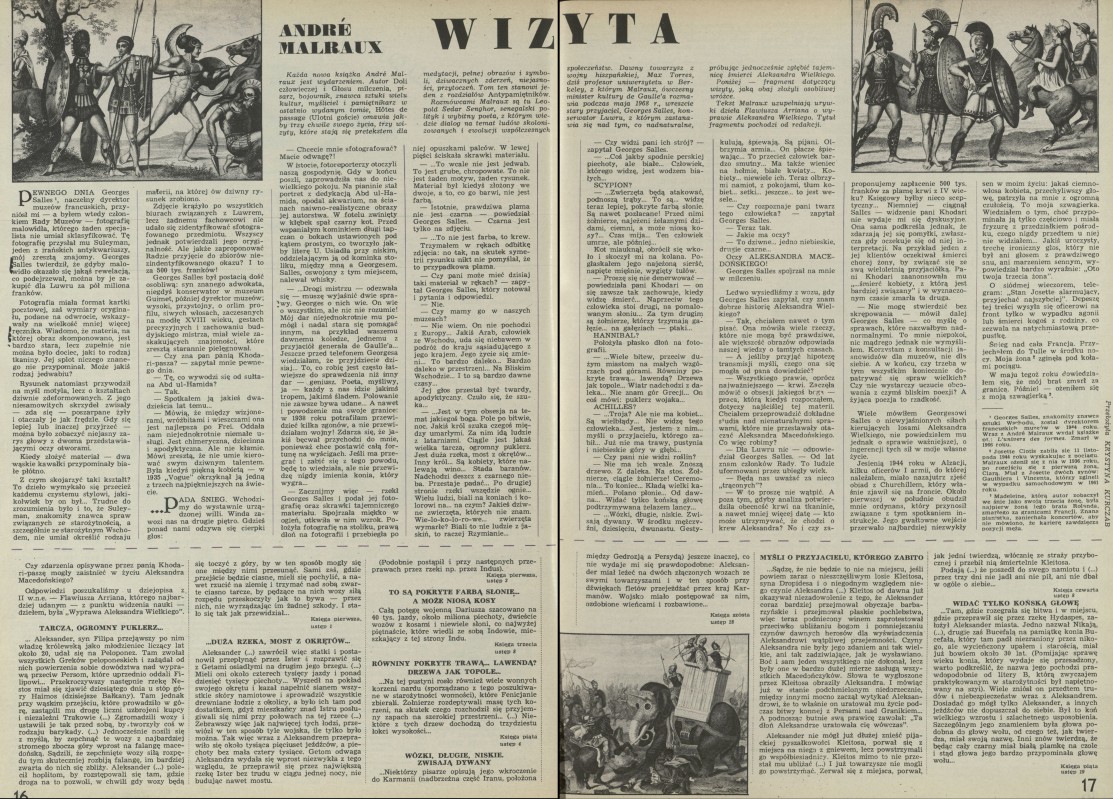 Archiwum / Artykuł nr 1611 (08/1976) 67684/123969 Podziel się Tytuł Wizyta Autor André Malraux Krystyna Kurczab Kategoria Artykuł Artykuł z numeru 1611 (8/1976) Data wydania 22 lutego 1976 Tagi Aleksander Wielki Aleksander Macedoński historia starożytna