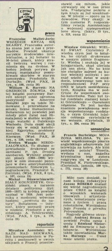Archiwum / Czytać albo nie czytać? nr 1622 (19/1976) 893/1866 Podziel się Tytuł Czytać albo nie czytać? Rubryka Czytać albo nie czytać? Artykuł z numeru 1622 (19/1976) Data wydania 9 maja 1976