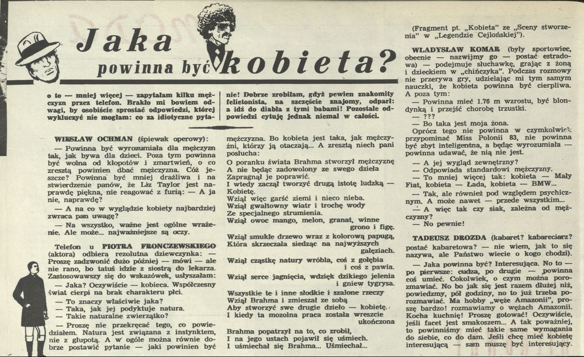 Archiwum / Kobieta w Przekroju nr 2022 (11/1984) 34/215 Podziel się Tytuł Jaka powinna być kobieta? Rubryka Kobieta w Przekroju Artykuł z numeru 2022 (11/1984) Data wydania 11 marca 1984