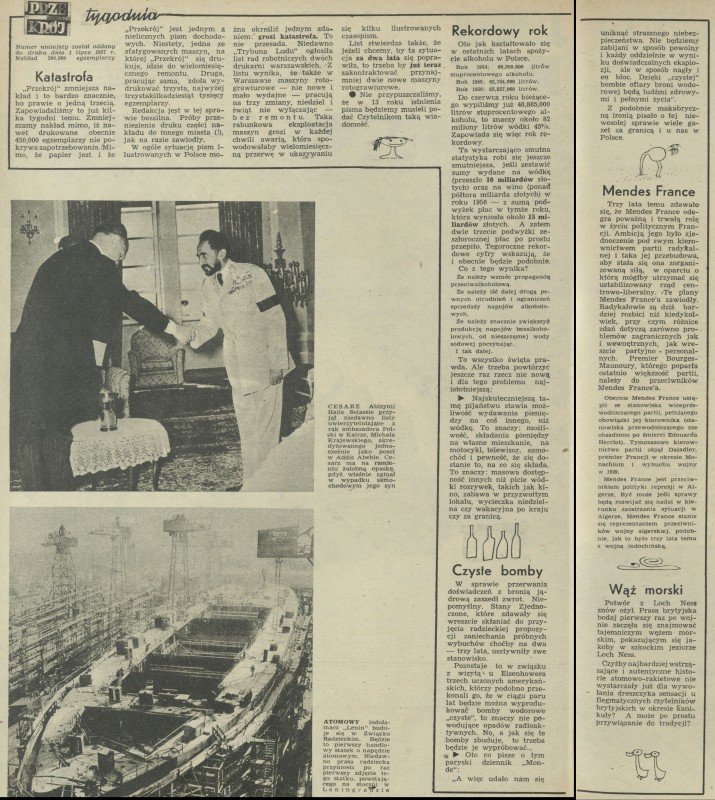 Archiwum / Przekrój tygodnia nr 639 (28/1957) 14/17 Podziel się Tytuł Przekrój tygodnia Rubryka Przekrój tygodnia Artykuł z numeru 639 (28/1957) Data wydania 7 lipca 1957 Tagi "Przekrój" drukarnie alkohol statystyka broń jądrowa Mendes France Potwór z Loch Ness