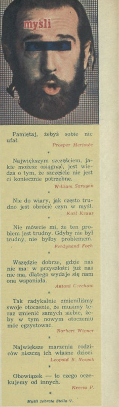 Archiwum / Myśli nr 1618 (15/1976) 675/1933 Podziel się Tytuł Myśli Autor Stella Varcaby Rubryka Myśli Artykuł z numeru 1618 (15/1976) Data wydania 11 kwietnia 1976 Tagi cytaty myśli aforyzmy