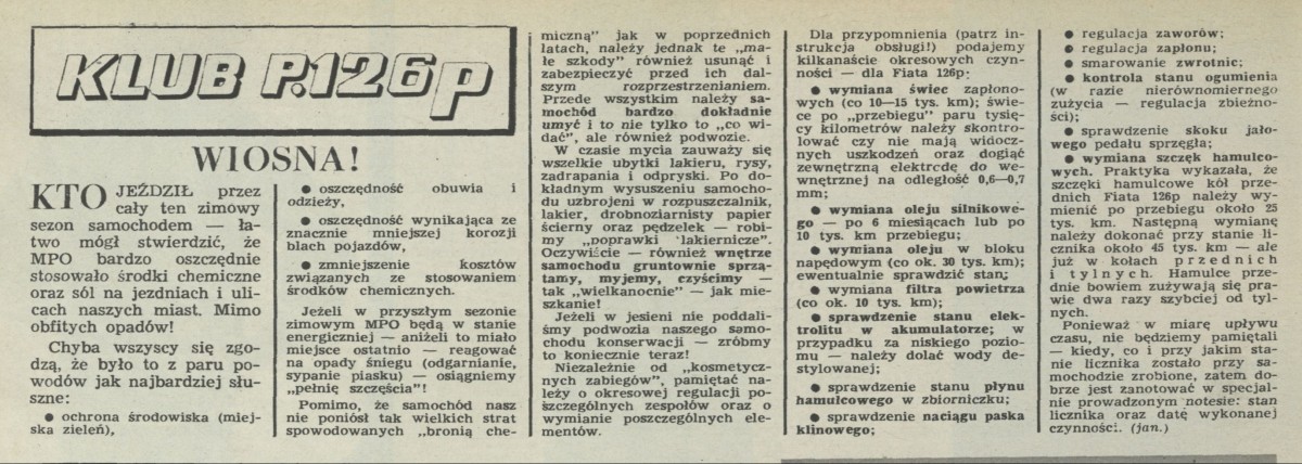 Archiwum nr 1618 (15/1976) 68058/123969 Podziel się Tytuł Klub P.126p Artykuł z numeru 1618 (15/1976) Data wydania 11 kwietnia 1976