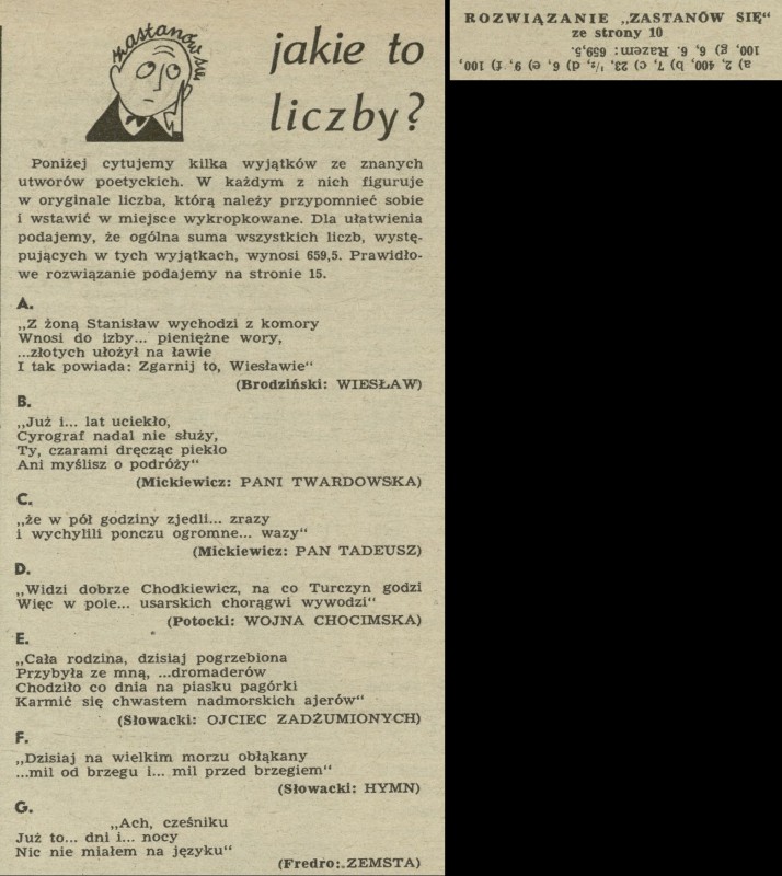 Archiwum / Łamigłówki Przekroju nr 320 (22/1951) 33/46 Podziel się Tytuł Jakie to liczby? Rubryka Łamigłówki Przekroju Artykuł z numeru 320 (22/1951) Data wydania 27 maja 1951 Tagi zagadka zgadywanka łamigłówka zastanów się