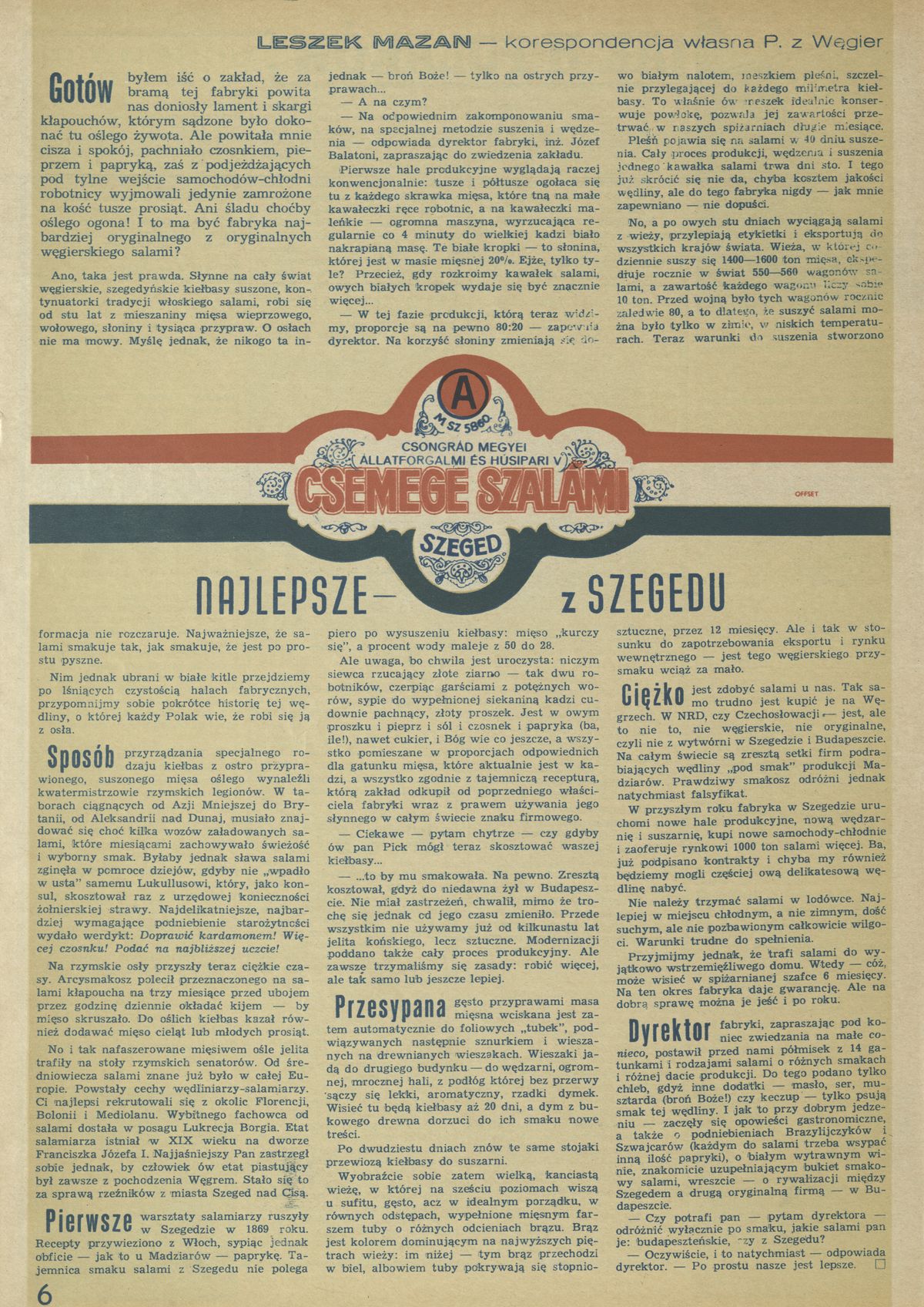 Archiwum / korespondencja własna "Przekroju" nr 1614 (11/1976) 220/626 Podziel się Tytuł Najlepsze z szeregu Autor Leszek Mazan Rubryka korespondencja własna "Przekroju" Artykuł z numeru 1614 (11/1976) Data wydania 14 marca 1976 Tagi Węgry przemysł