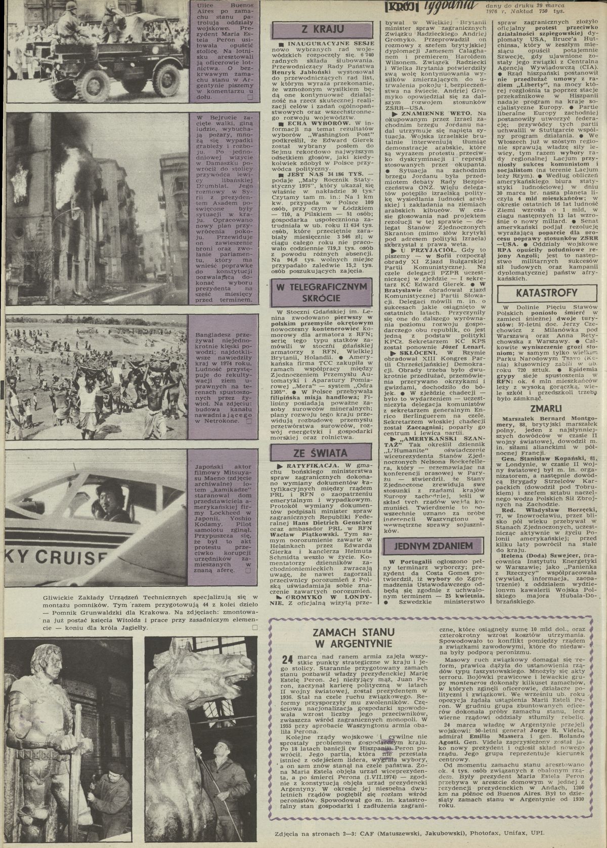 Archiwum / Przekrój tygodnia nr 1617 (14/1976) 603/1933 Podziel się Tytuł Przekrój tygodnia Rubryka Przekrój tygodnia Artykuł z numeru 1617 (14/1976) Data wydania 4 kwietnia 1976 Tagi polityka wojna Argentyna