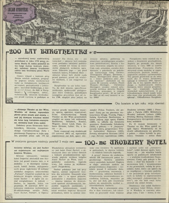 Archiwum / korespondencja własna "Przekroju" nr 1623 (20/1976) 41/98 Podziel się Tytuł Co Wiedeńczycy świętuje tej wiosny? Autor Lucjan Kydryński Rubryka korespondencja własna "Przekroju" Artykuł z numeru 1623 (20/1976) Data wydania 16 maja 1976 Tagi Austria kultura
