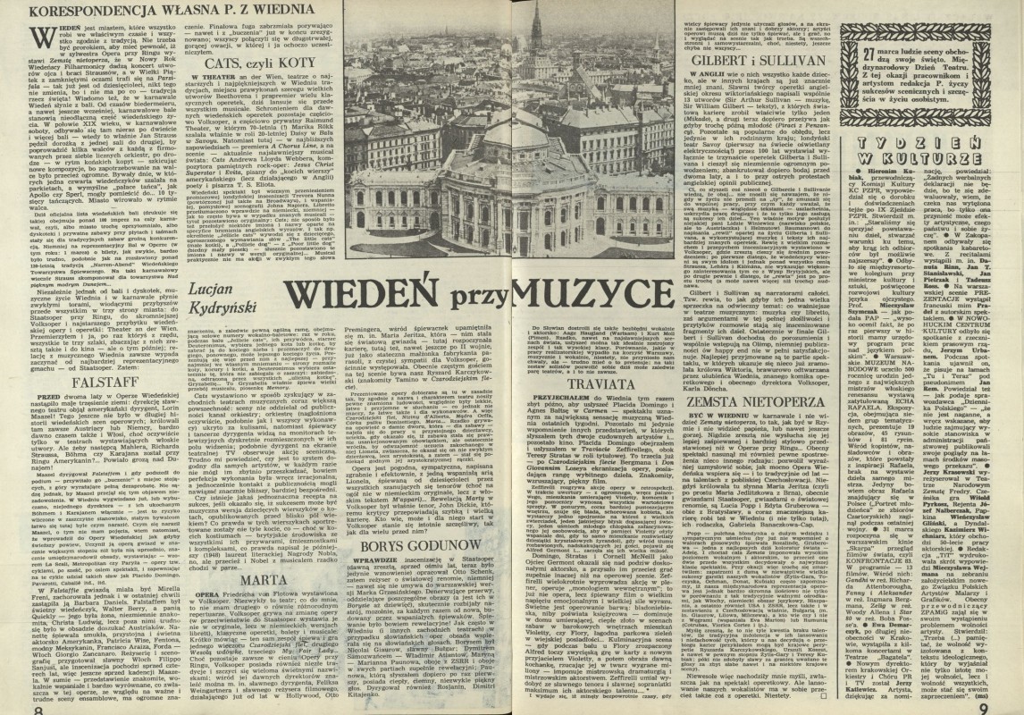 Archiwum / korespondencja własna "Przekroju" nr 2024 (13/1984) 17/59 Podziel się Tytuł Wiedeń przy muzyce Autor Lucjan Kydryński Rubryka korespondencja własna "Przekroju" Artykuł z numeru 2024 (13/1984) Data wydania 25 marca 1984 Tagi Wiedeń
