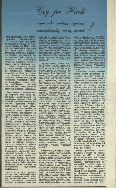 Archiwum / Artykuł nr 2024 (13/1984) 83205/123969 Podziel się Tytuł Czy po Haiti naprawdę wędrują ozywieni czarnoksięską moca zmarli? Autor et Kategoria Artykuł Artykuł z numeru 2024 (13/1984) Data wydania 25 marca 1984 Tagi haiti zmarli