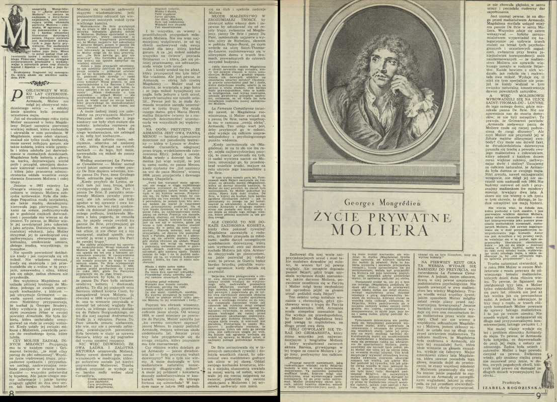Archiwum / Proza nr 1651 (48/1976) 53755/121061 Podziel się Tytuł „Życie prywatne Moliera” Autor Izabela Rogozińska Kategoria Proza Artykuł z numeru 1651 (48/1976) Data wydania 28 listopada 1976 Tagi Molier