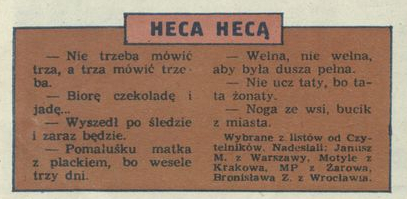 Archiwum / Heca hecą nr 1651 (48/1976) 69178/123969 Podziel się Tytuł Heca hecą Rubryka Heca hecą Artykuł z numeru 1651 (48/1976) Data wydania 28 listopada 1976