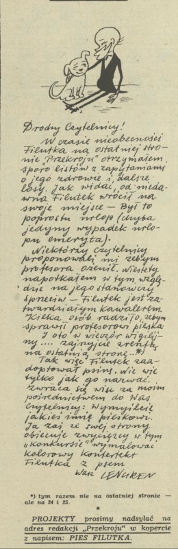 Archiwum / Profesor Filutek nr 818-20 (50-52/1960) 18/18 Podziel się Tytuł Prof. Filutek Autor Zbigniew Lengren Rubryka Profesor Filutek Artykuł z numeru 818-20 (50/1960) Data wydania 11 grudnia 1960 Tagi pies Filutka