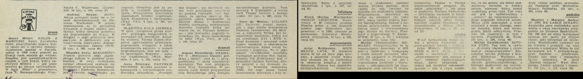 Archiwum / Czytać albo nie czytać? nr 1646 (43/1976) 54985/123969 Podziel się Tytuł Czytać albo nie czytać? Rubryka Czytać albo nie czytać? Artykuł z numeru 1646 (43/1976) Data wydania 24 października 1976
