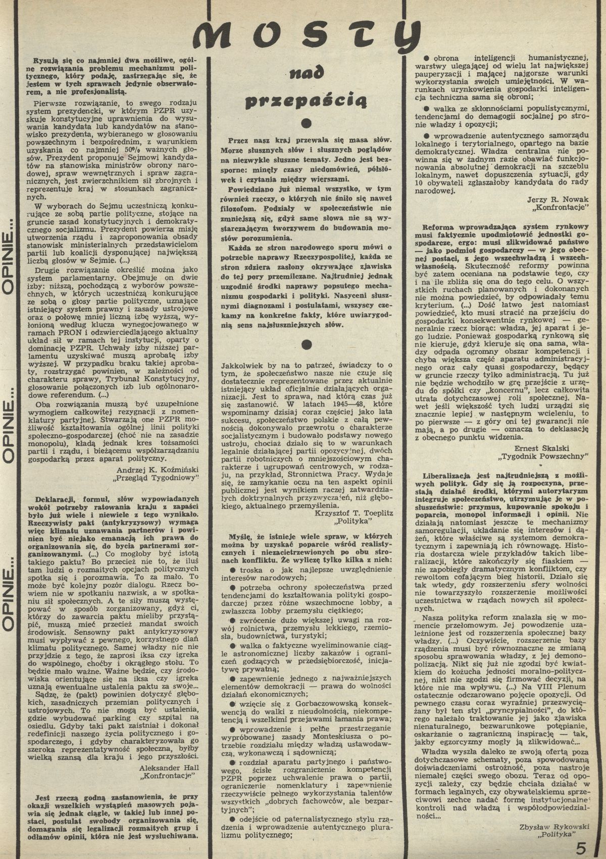 Archiwum / Relacja nr 2257 (37/1988) 1160/1161 Podziel się Tytuł Opinie: mosty nad przepaścią Kategoria Relacja Artykuł z numeru 2257 (37/1988) Data wydania 11 września 1988 Tagi opinie co piszą inni Konforntacje Polityka