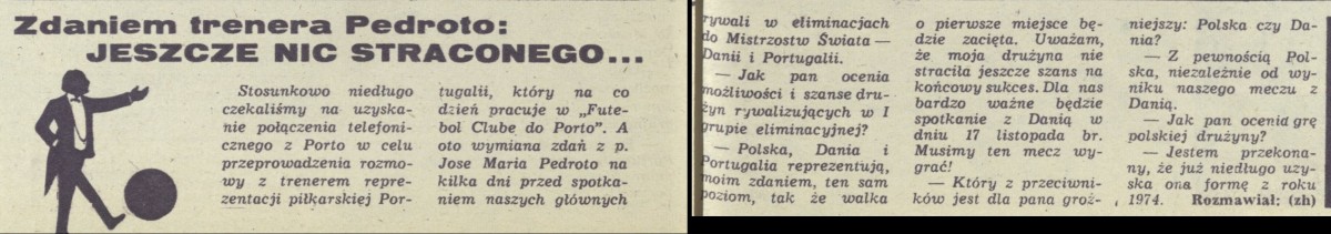 Archiwum / Wywiad nr 1649 (46/1976) 57/404 Podziel się Tytuł Zdaniem trenera Pedroto: jeszcze nic straconego Autor zh Kategoria Wywiad Artykuł z numeru 1649 (46/1976) Data wydania 14 listopada 1976 Tagi sport