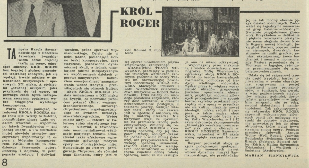 Archiwum / Teatr nr 1645 (42/1976) 143/194 Podziel się Tytuł Król Roger Autor Marian Sienkiewicz Rubryka Teatr Artykuł z numeru 1645 (42/1976) Data wydania 17 października 1976