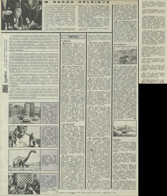 Archiwum / Przekrój tygodnia nr 1652 (49/1976) 166/229 Podziel się Tytuł Przekrój tygodnia Autor CAF Rubryka Przekrój tygodnia Artykuł z numeru 1652 (49/1976) Data wydania 5 grudnia 1976 Tagi Helsinki Układ Warszawski Gierek