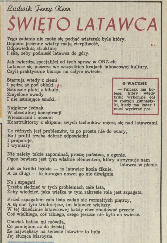 Archiwum / Rozmaitości [old] nr 2259 (39/1988) 92872/123969 Podziel się Tytuł Święto latawca Autor Ludwik Jerzy Kern Rubryka Rozmaitości [old] Artykuł z numeru 2259 (39/1988) Data wydania 25 września 1988 Tagi Ludwik Jerzy Kern poezja