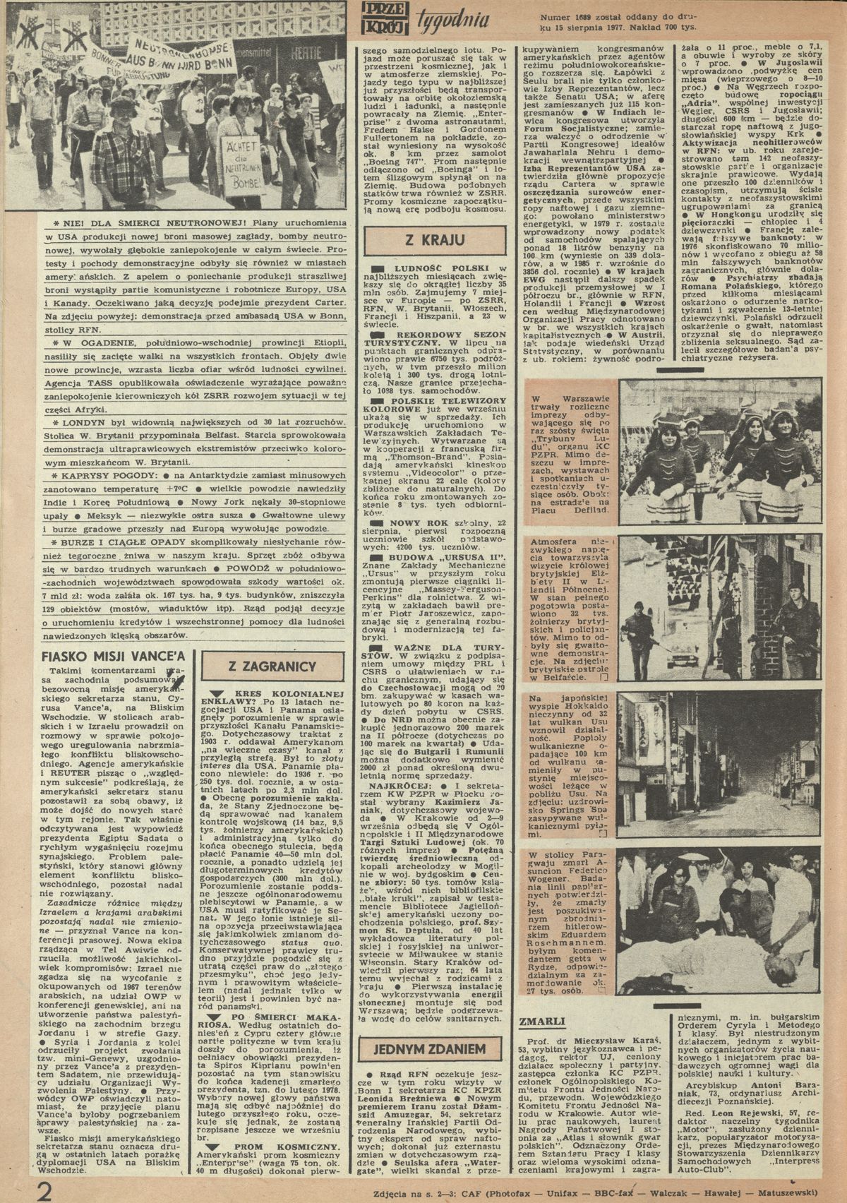 Archiwum / Przekrój tygodnia nr 1689 (34/1977) 53103/123969 Podziel się Tytuł Przekrój tygodnia Rubryka Przekrój tygodnia Artykuł z numeru 1689 (34/1977) Data wydania 21 sierpnia 1977 Tagi polityka wojsko Ameryka Anglia