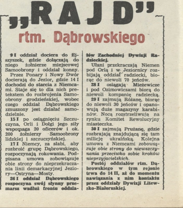 Archiwum / Artykuł nr specjalny 2/1990 02/5664 Podziel się Tytuł Wilno: „Rajd” rtm. Dąbrowskiego Kategoria Artykuł Artykuł z numeru nr specjalny 2/1990 Data wydania 1 stycznia 1990 Tagi wojna walka żołnież