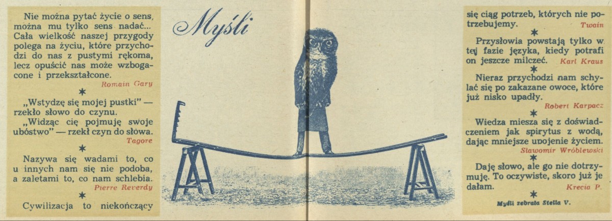 Archiwum / Myśli nr 1718 (11/1978) 08/31 Podziel się Tytuł Myśli ludzi wielkich, średnich i psa Fafika Autor Stella Varcaby Rubryka Myśli Artykuł z numeru 1718 (11/1978) Data wydania 12 marca 1978
