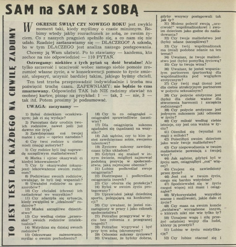 Archiwum / Rozrywka nr 1550-51 (51-52/1974) 2775/2813 Podziel się Tytuł Sam na sam z sobą Kategoria Rozrywka Artykuł z numeru 1550-51 (51/1974) Data wydania 20 grudnia 1974