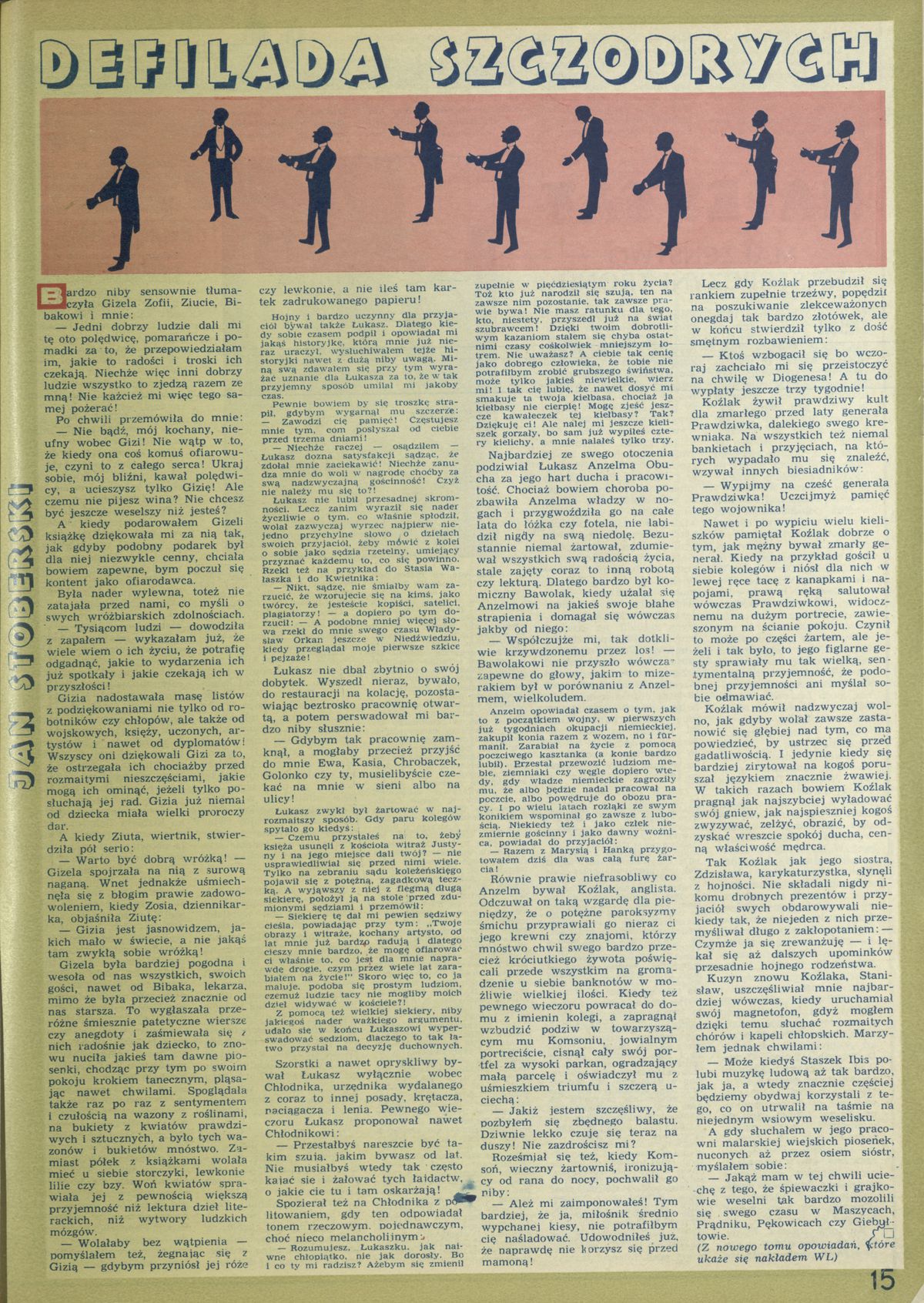 Archiwum / Opowiadanie nr 1667 (12/1977) 69861/123969 Podziel się Tytuł Defilada szczodrych Autor Jan Stoberski Kategoria Opowiadanie Artykuł z numeru 1667 (12/1977) Data wydania 20 marca 1977