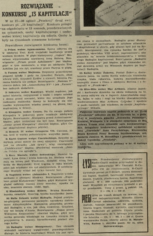 Archiwum / Konkurs nr 41 (03/1946) 950/123969 Podziel się Tytuł Rozwiązanie konkursu „13 kapitulacji” Rubryka Konkurs Artykuł z numeru 41 (3/1946) Data wydania 20 stycznia 1946 Tagi konkurs rozwiązanie kapitulacja