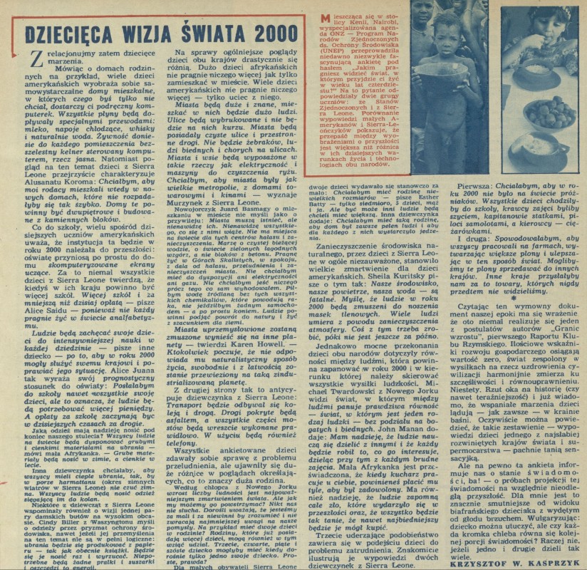 Archiwum / Społeczeństwo nr 1677 (22/1977) 01/12 Podziel się Tytuł Dziecięca wizja świata 2000 Autor Krzysztof W. Kasprzyk Kategoria Społeczeństwo Artykuł z numeru 1677 (22/1977) Data wydania 29 maja 1977 Tagi dzień dziecka dzieci