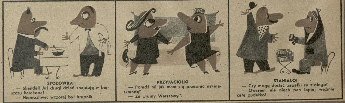 Archiwum / Historyjki obrazkowe nr 41 (03/1946) 11/67 Podziel się Tytuł Stołówka, przyjaciółki, staniało! Kategoria Historyjki obrazkowe Artykuł z numeru 41 (3/1946) Data wydania 20 stycznia 1946 Tagi ruiny Warszawy zapałki stołówka humor