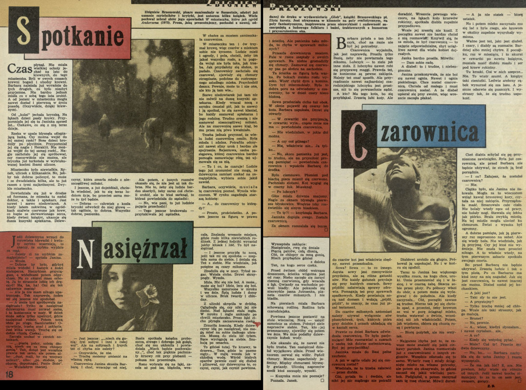 Archiwum / Opowiadanie nr 2261 (41/1988) 92952/123969 Podziel się Tytuł Spotkanie. Czarownica. Nasięźrzał. Autor Zbigniew Brzozowski Kategoria Opowiadanie Artykuł z numeru 2261 (41/1988) Data wydania 9 października 1988 Tagi proza opowiadanie